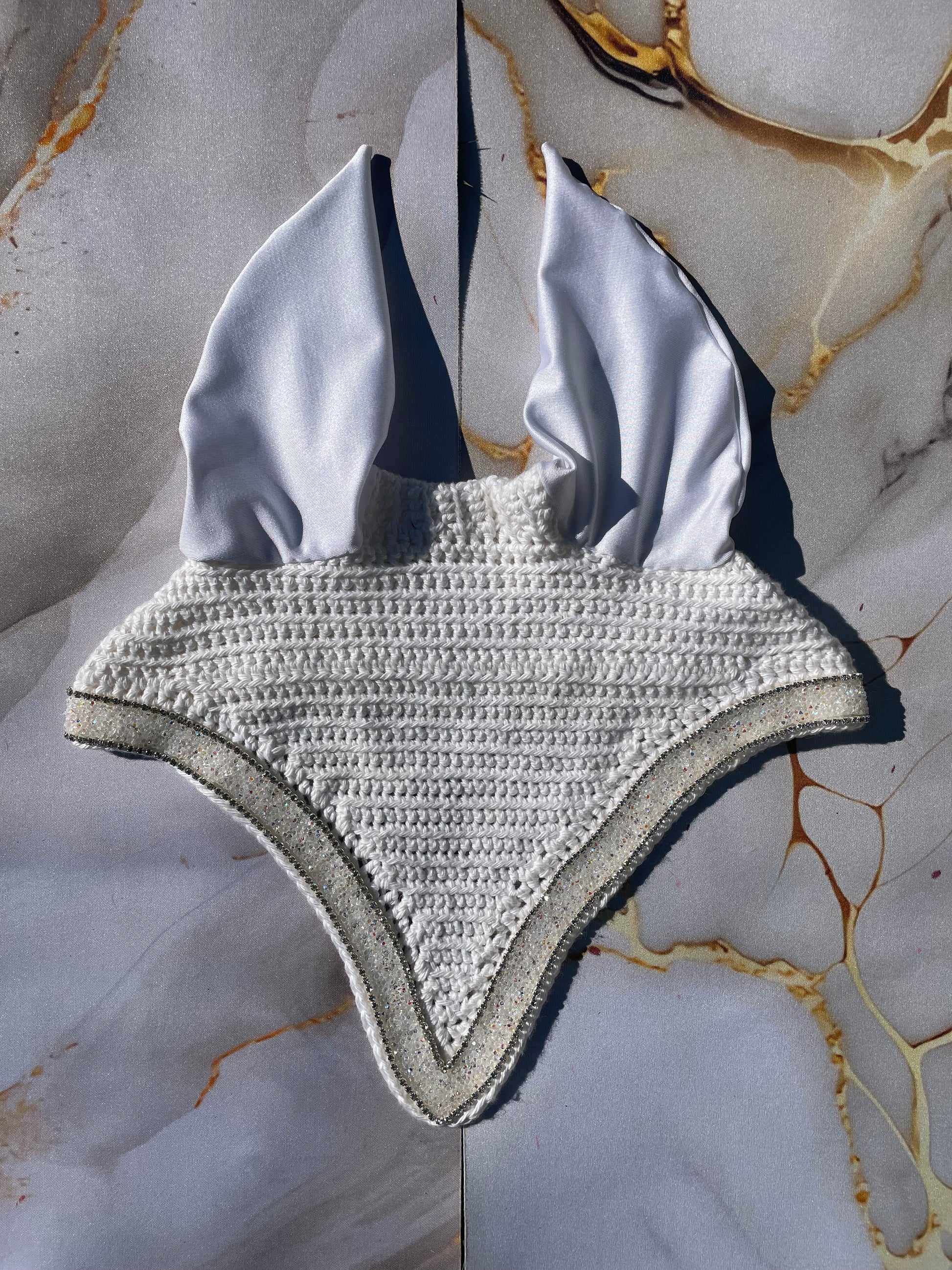 hand crafted crochet bonnet perfect for the show ring or a sparkly everyday ride