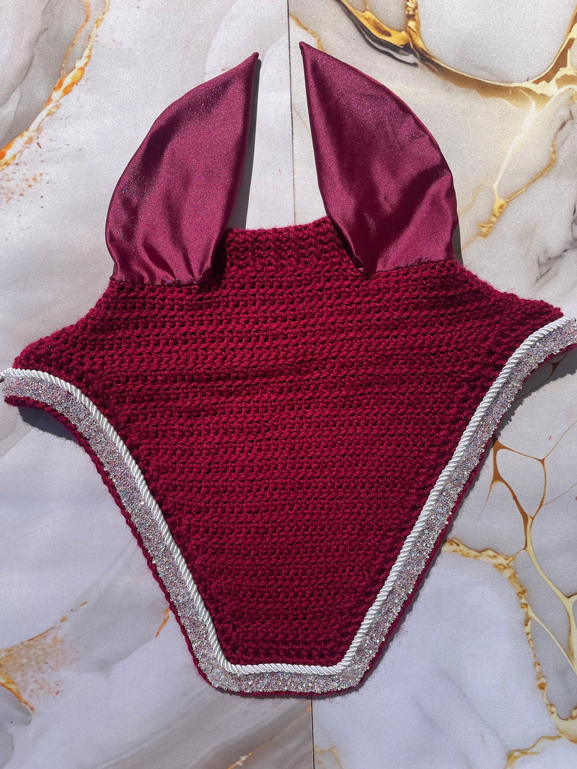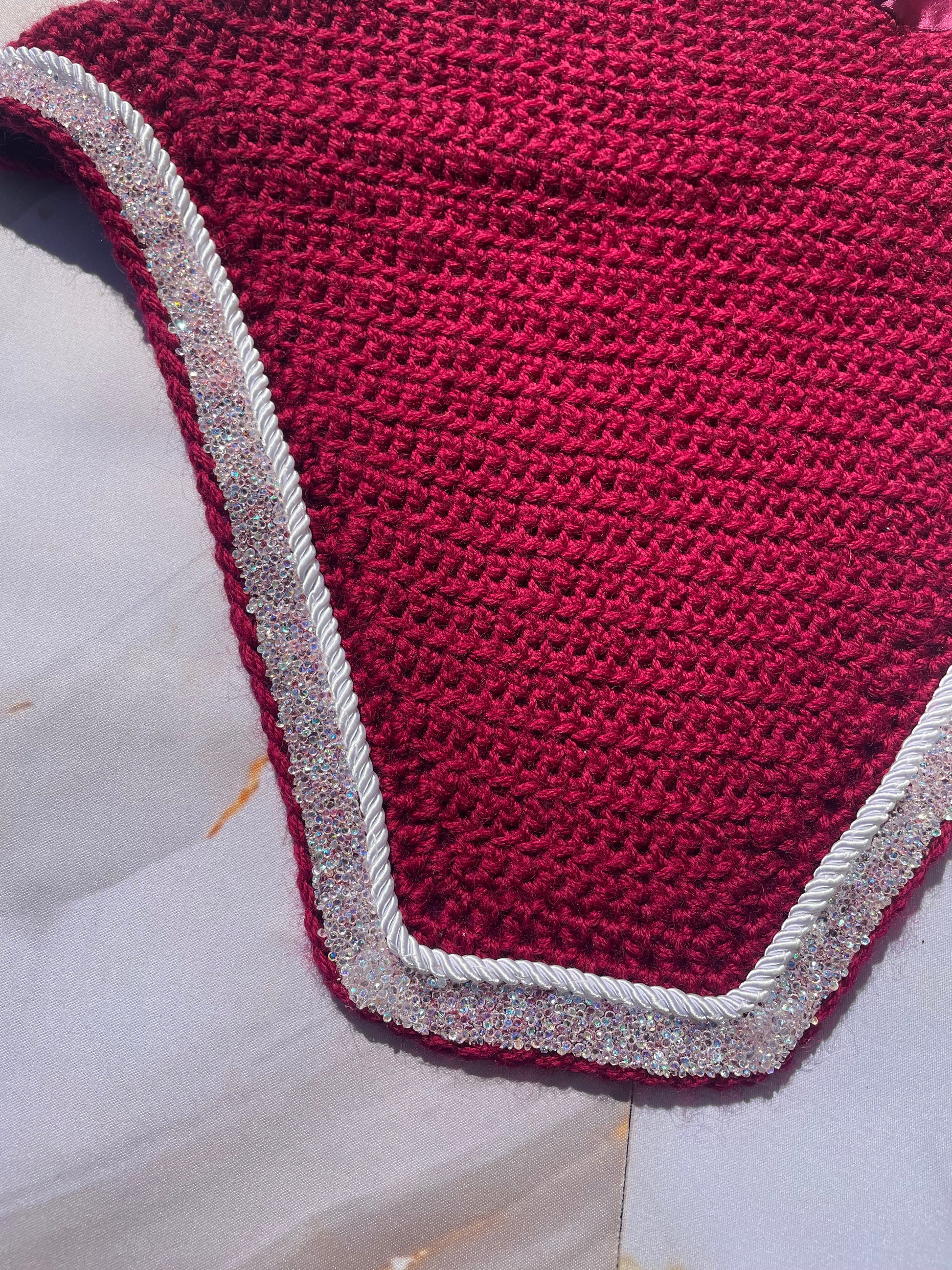 hand crafted crochet bonnet perfect for the show ring or a sparkly everyday ride